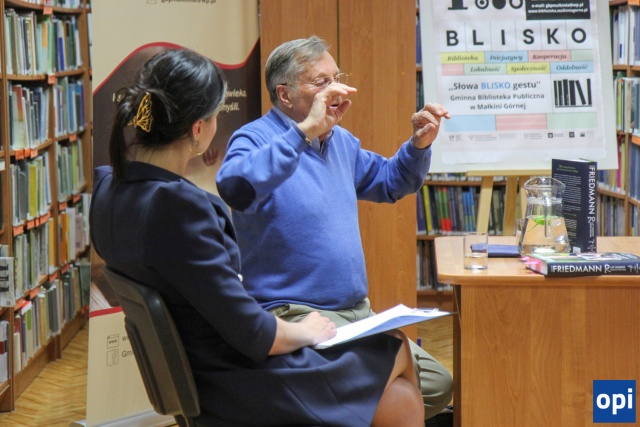 Aktor, występujący na co dzień w Teatrze Dramatycznym im. Jerzego Szaniawskiego w Płocku, przyjechał do Małkini Górnej, gdzie opowiedział o swojej książce "70 lat mojego dzieciństwa, czyli niech pan powie coś wesołego".