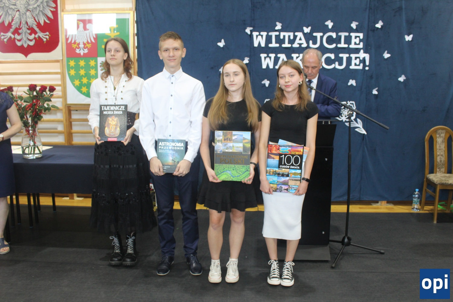 Zasłużonym uczniom, którzy wykazali się szczególną pracowitością i systematycznością, dyrektor wręczył nagrody, świadectwa z wyróżnieniem za wyniki w nauce, frekwencje, osiągnięcia sportowe i zwycięzcom w konkursach.