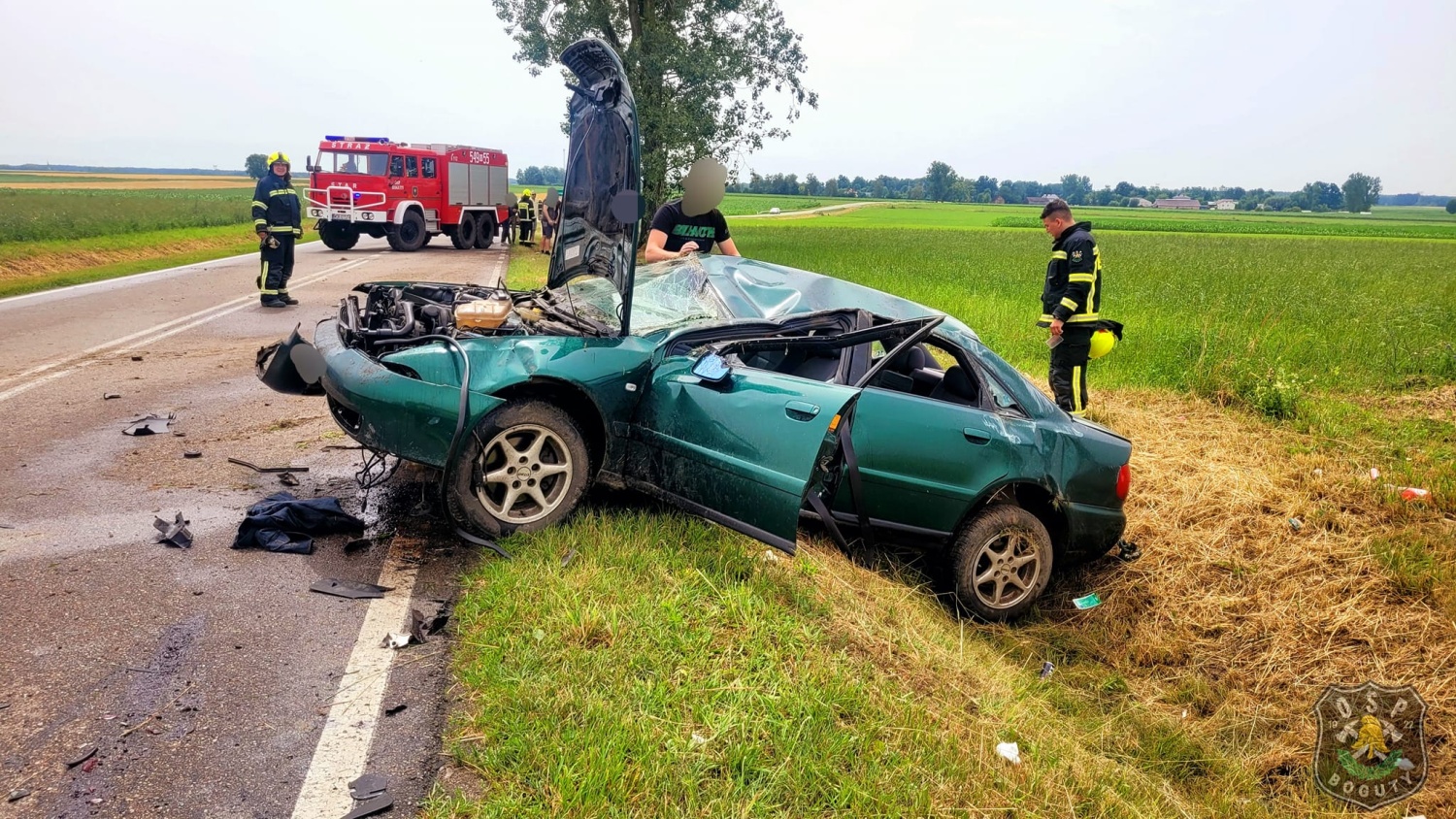 Poszkodowana kobieta została przekazana zespołowi ratownictwa medycznego który kontynuował udzielanie pomocy medycznej i przetransportował ranną do szpitala.