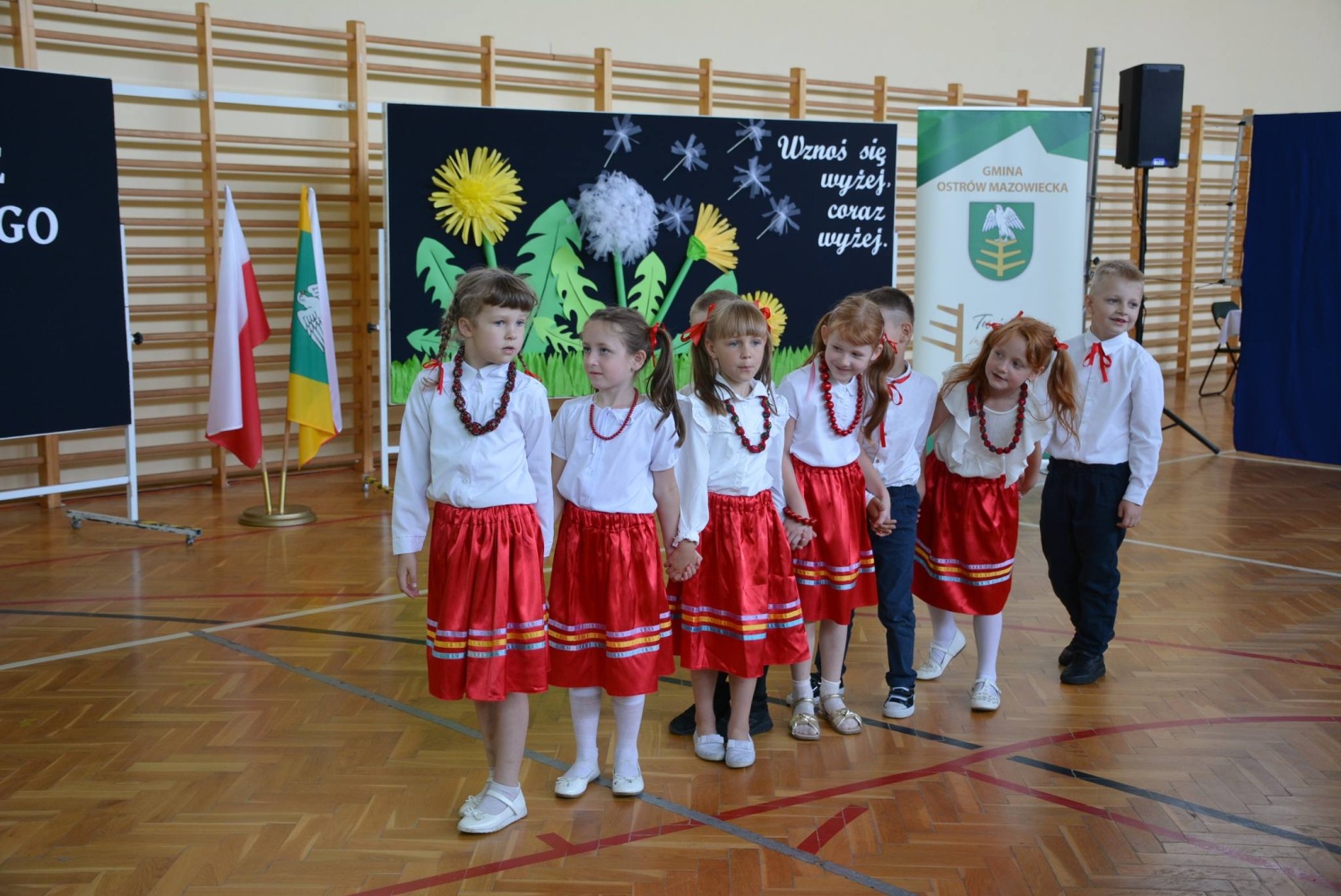 Podczas uroczystości wręczono nagrody Wójta Gminy Ostrów Mazowiecka za wybitne osiągnięcia w roku szkolnym 2023/2024 i przedstawiono osiągnięcia edukacyjne gminy.
