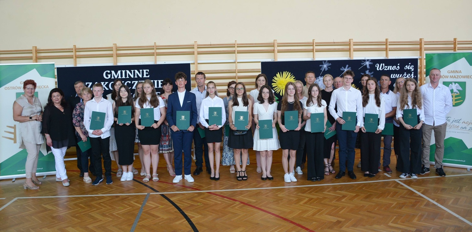 Podczas uroczystości wręczono nagrody Wójta Gminy Ostrów Mazowiecka za wybitne osiągnięcia w roku szkolnym 2023/2024 i przedstawiono osiągnięcia edukacyjne gminy.