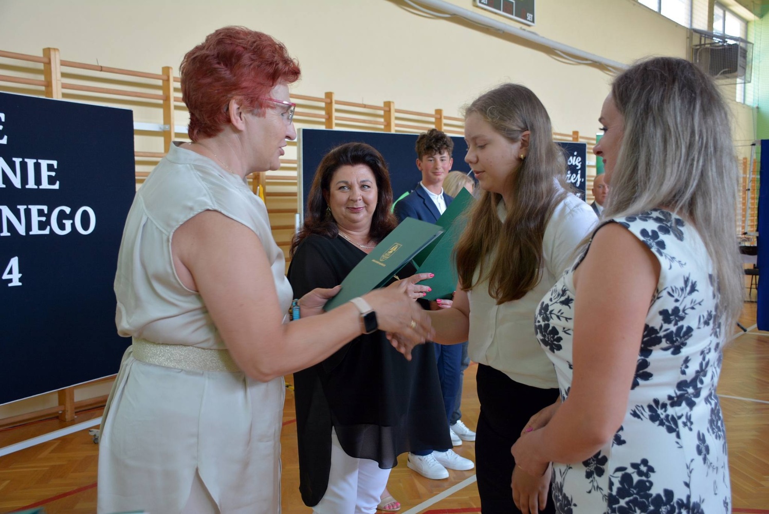Podczas uroczystości wręczono nagrody Wójta Gminy Ostrów Mazowiecka za wybitne osiągnięcia w roku szkolnym 2023/2024 i przedstawiono osiągnięcia edukacyjne gminy.