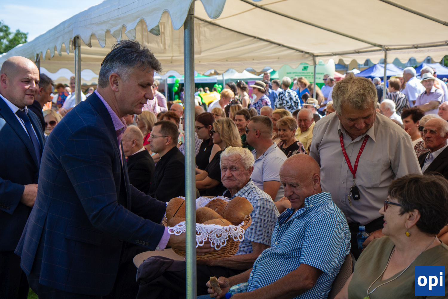 Święto plonów w Wąsewie. Uczestnicy dzielili się chlebem, sołectwa rywalizowały w turnieju, były także występy lokalnych artystów i młodych talentów oraz zabawy dla dzieci.