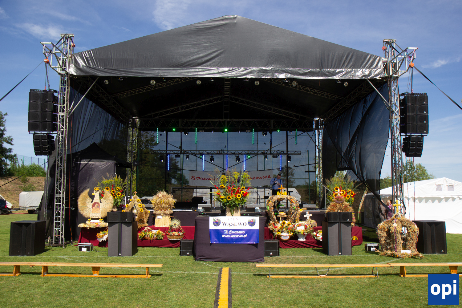 Święto plonów w Wąsewie. Uczestnicy dzielili się chlebem, sołectwa rywalizowały w turnieju, były także występy lokalnych artystów i młodych talentów oraz zabawy dla dzieci.