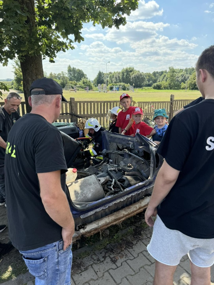 Zorganizowano inscenizację zdarzenia drogowego, która miała na celu pokazanie młodzieży, jak wygląda praca strażaka w sytuacjach kryzysowych.