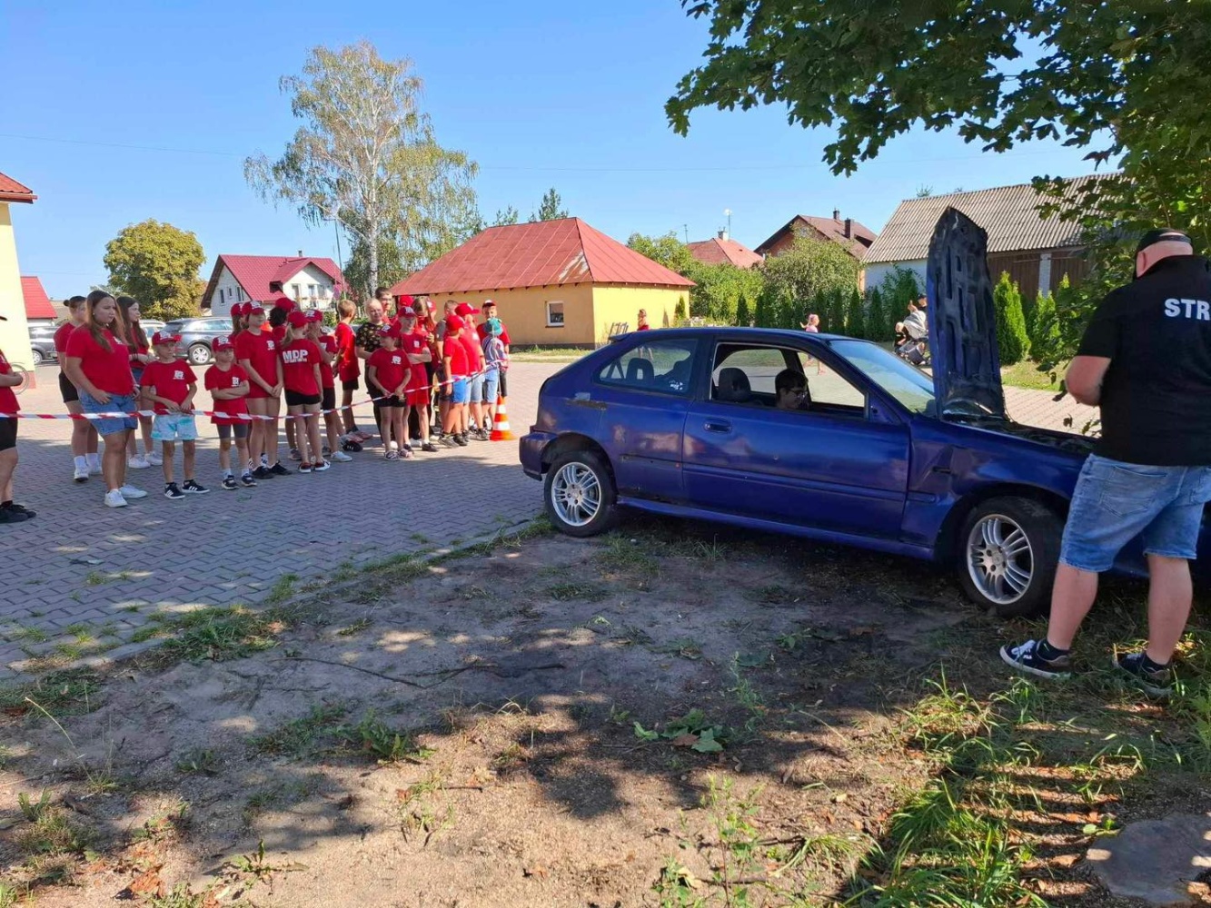 Zorganizowano inscenizację zdarzenia drogowego, która miała na celu pokazanie młodzieży, jak wygląda praca strażaka w sytuacjach kryzysowych.