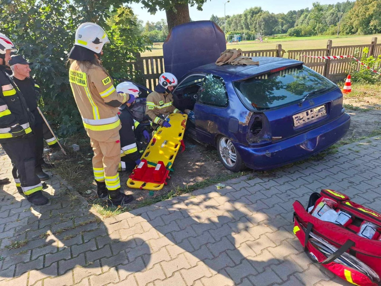 Zorganizowano inscenizację zdarzenia drogowego, która miała na celu pokazanie młodzieży, jak wygląda praca strażaka w sytuacjach kryzysowych.
