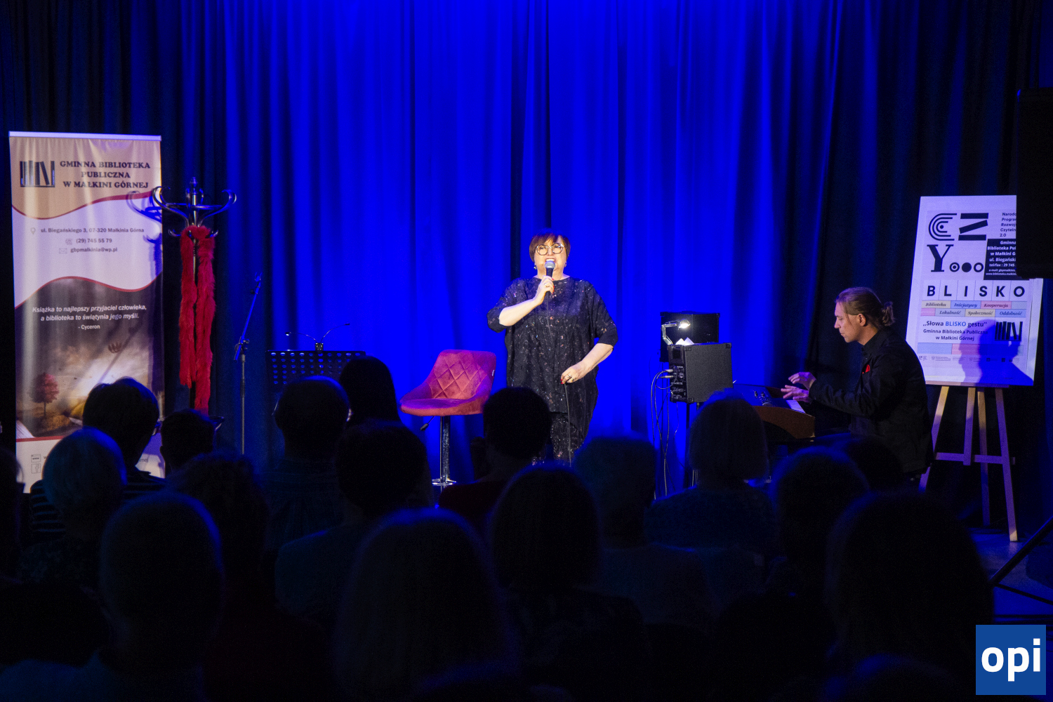 Krystyna Tkacz, czyli śpiewająca aktorka, jak mówi o sobie, wystąpiła z recitalem pt. "W drodze pod wiatr" w Gminnym Ośrodku Kultury i Sportu w Małkini Górnej.