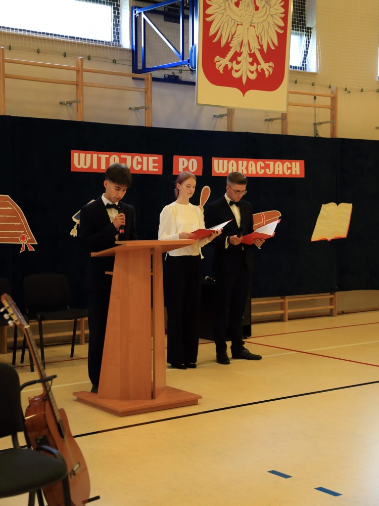 W tym roku przywitano trzy klasy pierwsze. Reprezentanci uczniów klas I złożyli ślubowanie na sztandar szkoły.