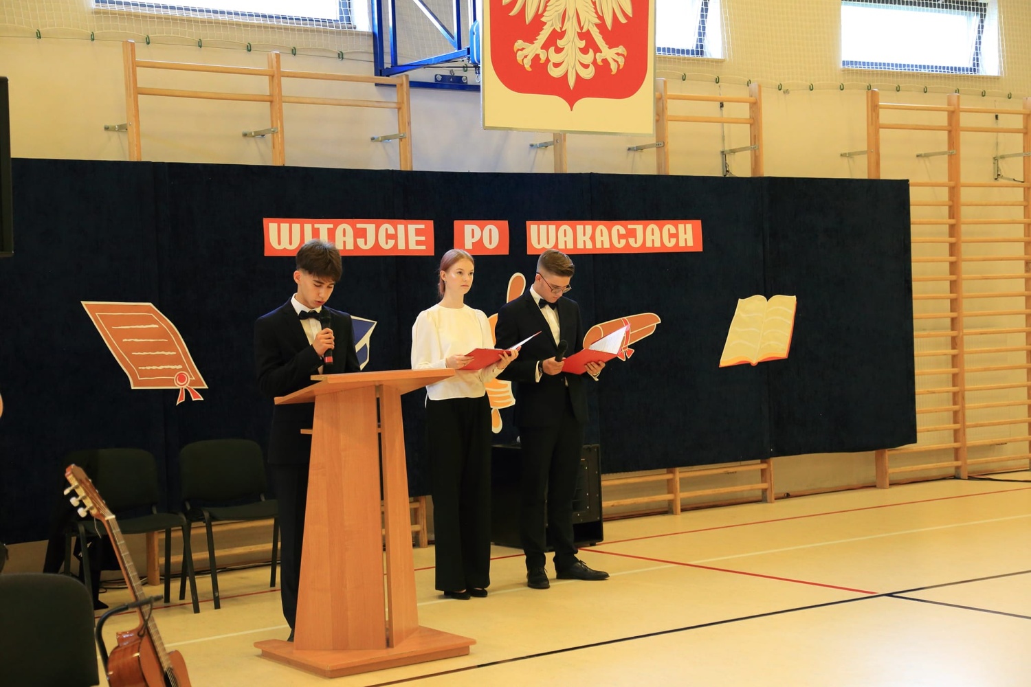 W tym roku przywitano trzy klasy pierwsze. Reprezentanci uczniów klas I złożyli ślubowanie na sztandar szkoły.
