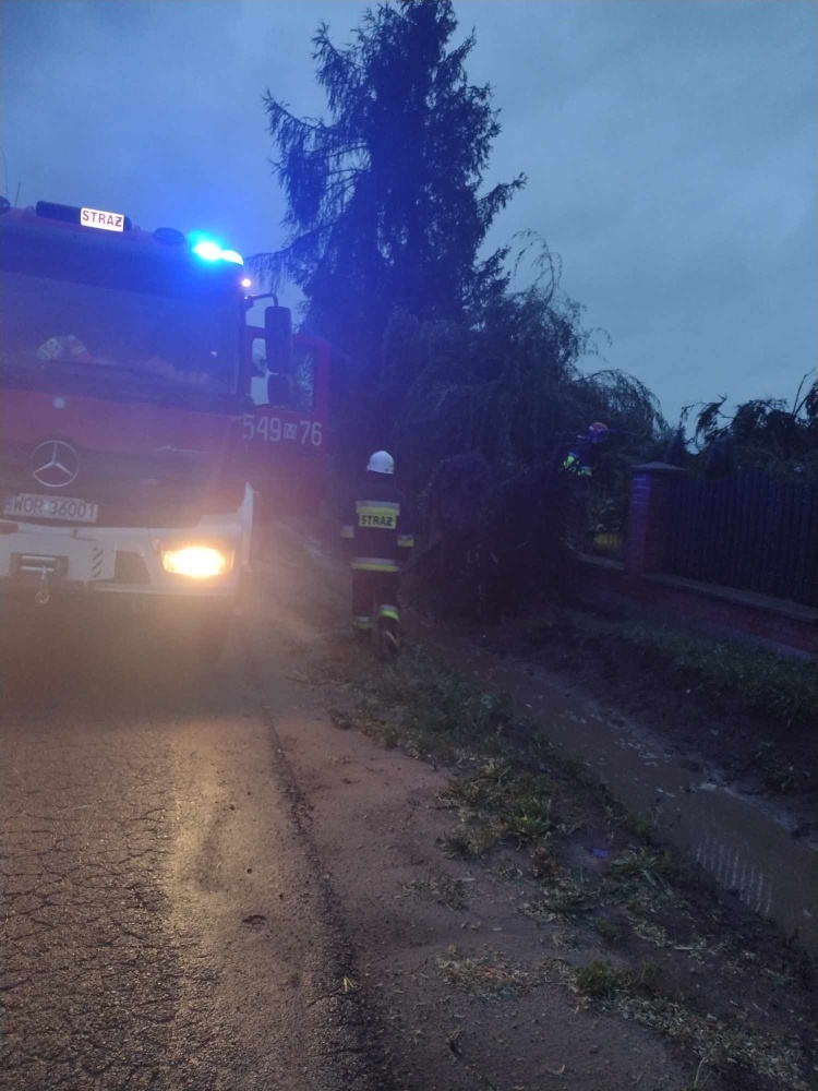 Strażacy z Ochotniczej Straży Pożarnej w Zarębach Kościelnych zostali dwukrotnie wezwani do usunięcia drzew powalonych przez silne wiatry.