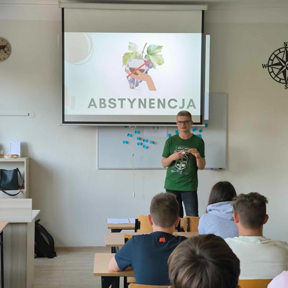 Warsztaty profilaktyczne pod hasłem "Wygraj swoją młodość", poświęcone problematyce uzależnień, zwłaszcza od alkoholu.
