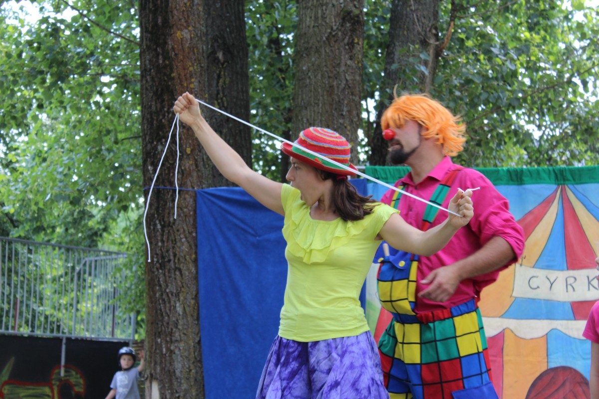 Wczoraj dzieci miały okazję wziąć udział w przedstawieniu interaktywnym przedstawiającym cyrkowe wyczyny klauna i dziewczyny.