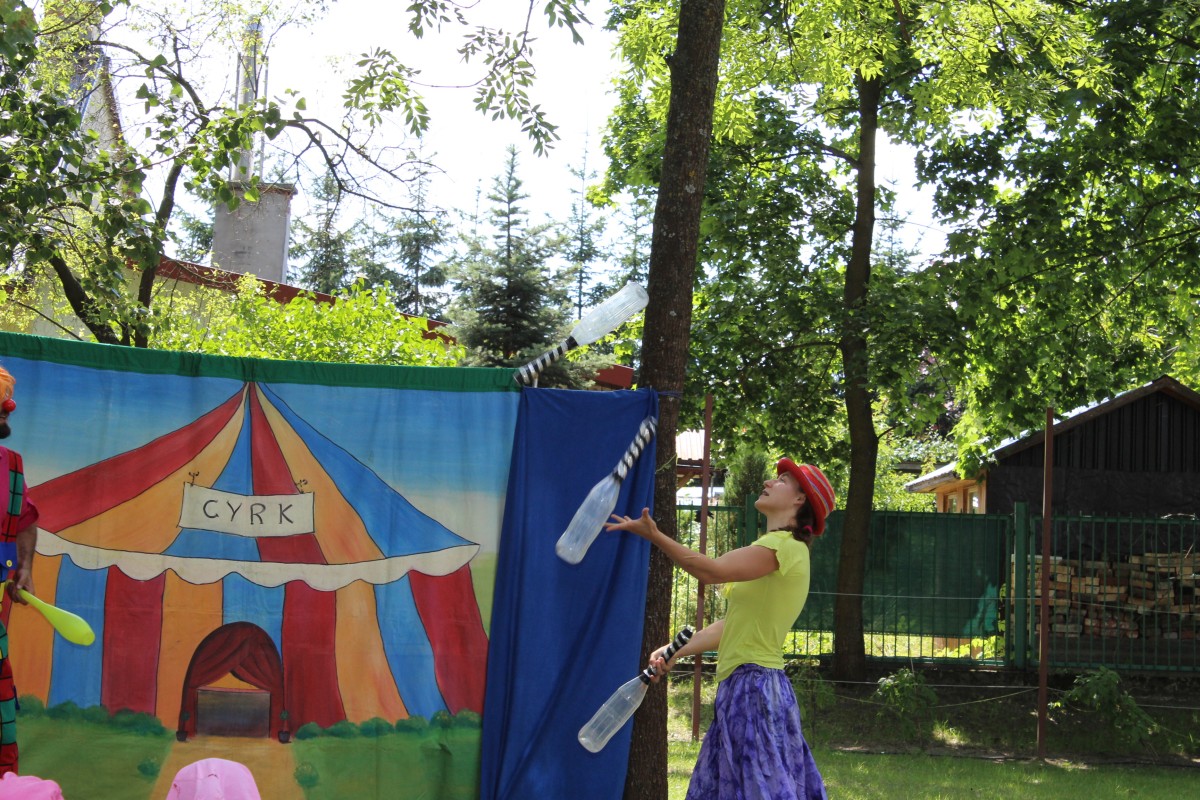 Wczoraj dzieci miały okazję wziąć udział w przedstawieniu interaktywnym przedstawiającym cyrkowe wyczyny klauna i dziewczyny.
