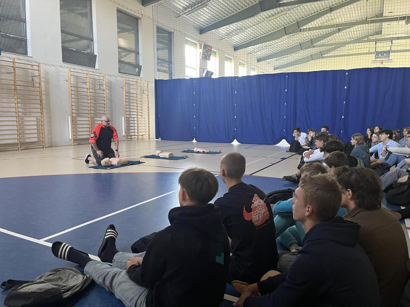 Praktyczne szkolenie z zakresu pierwszej pomocy przedmedycznej. Spotkanie poprowadził Michał Saniewski.