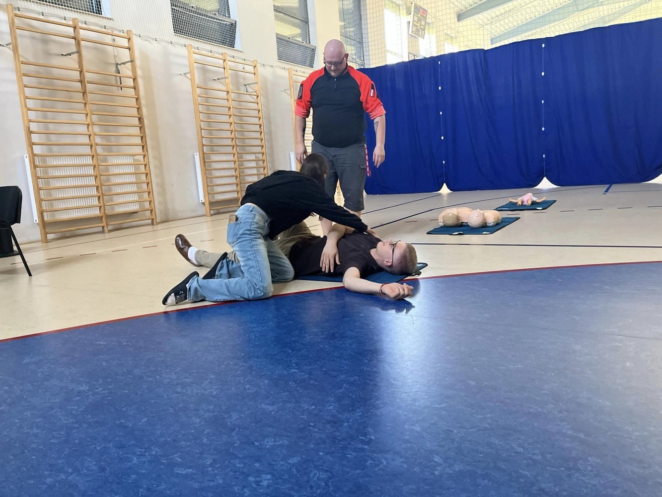 Praktyczne szkolenie z zakresu pierwszej pomocy przedmedycznej. Spotkanie poprowadził Michał Saniewski.