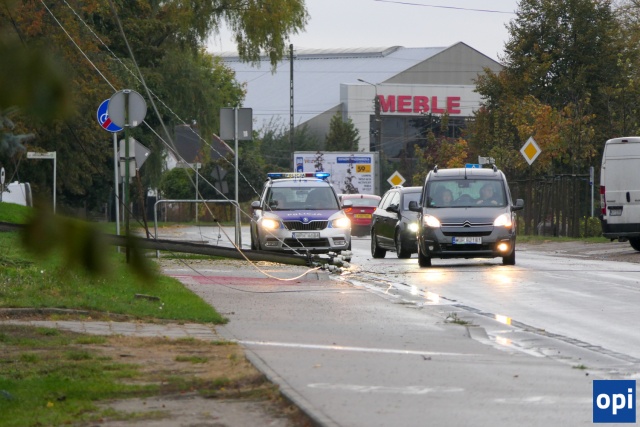 Przewrócony słup na ul. Różańskiej zablokował chodnik i częściowo jezdnię, co utrudniło poruszanie się w tej części Ostrowi Mazowieckiej.