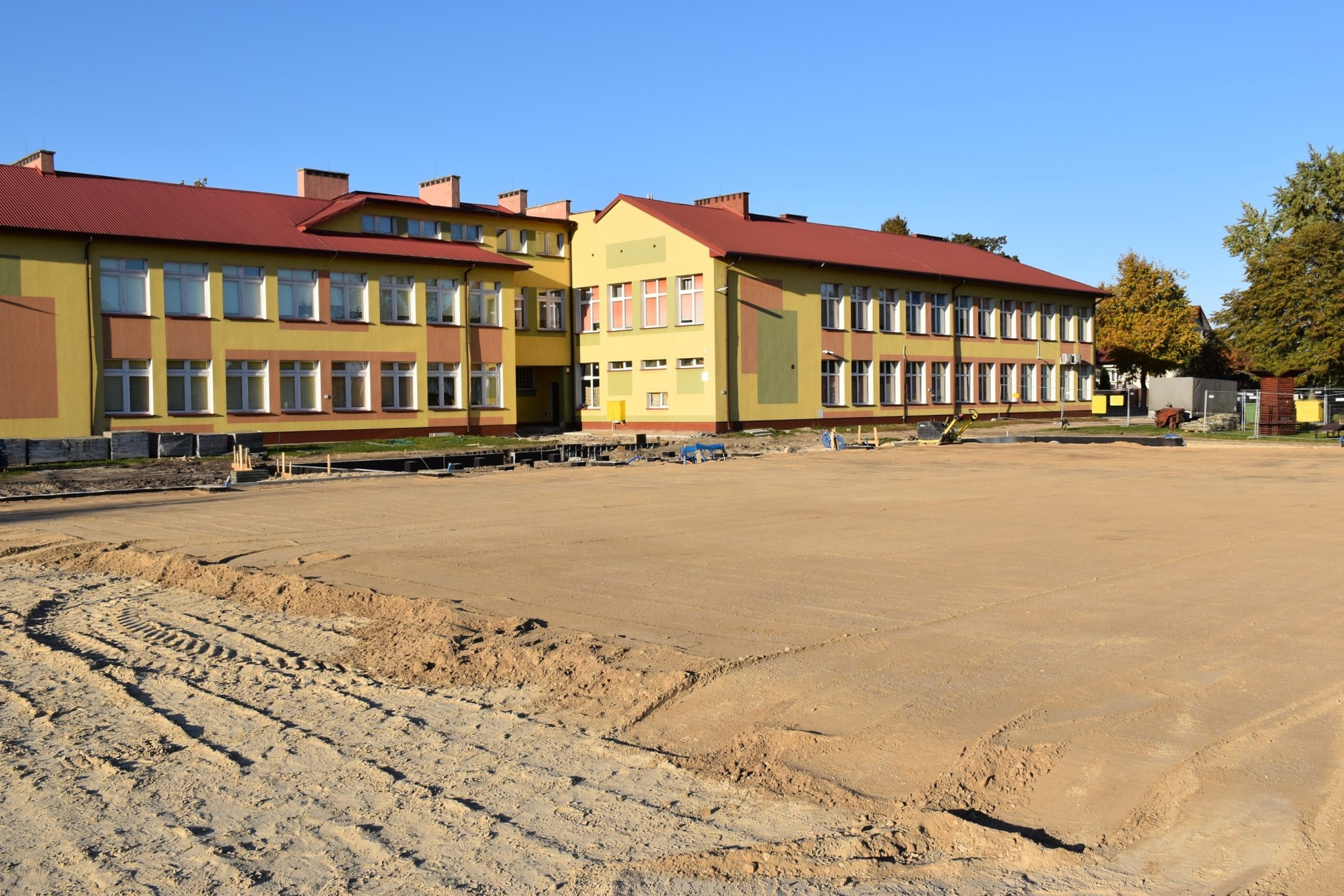 Fundamenty są już niemal gotowe, a prace nad parkingiem i drogą dojazdową postępują zgodnie z planem. Wkrótce rozpocznie się montaż drewnianego zadaszenia.