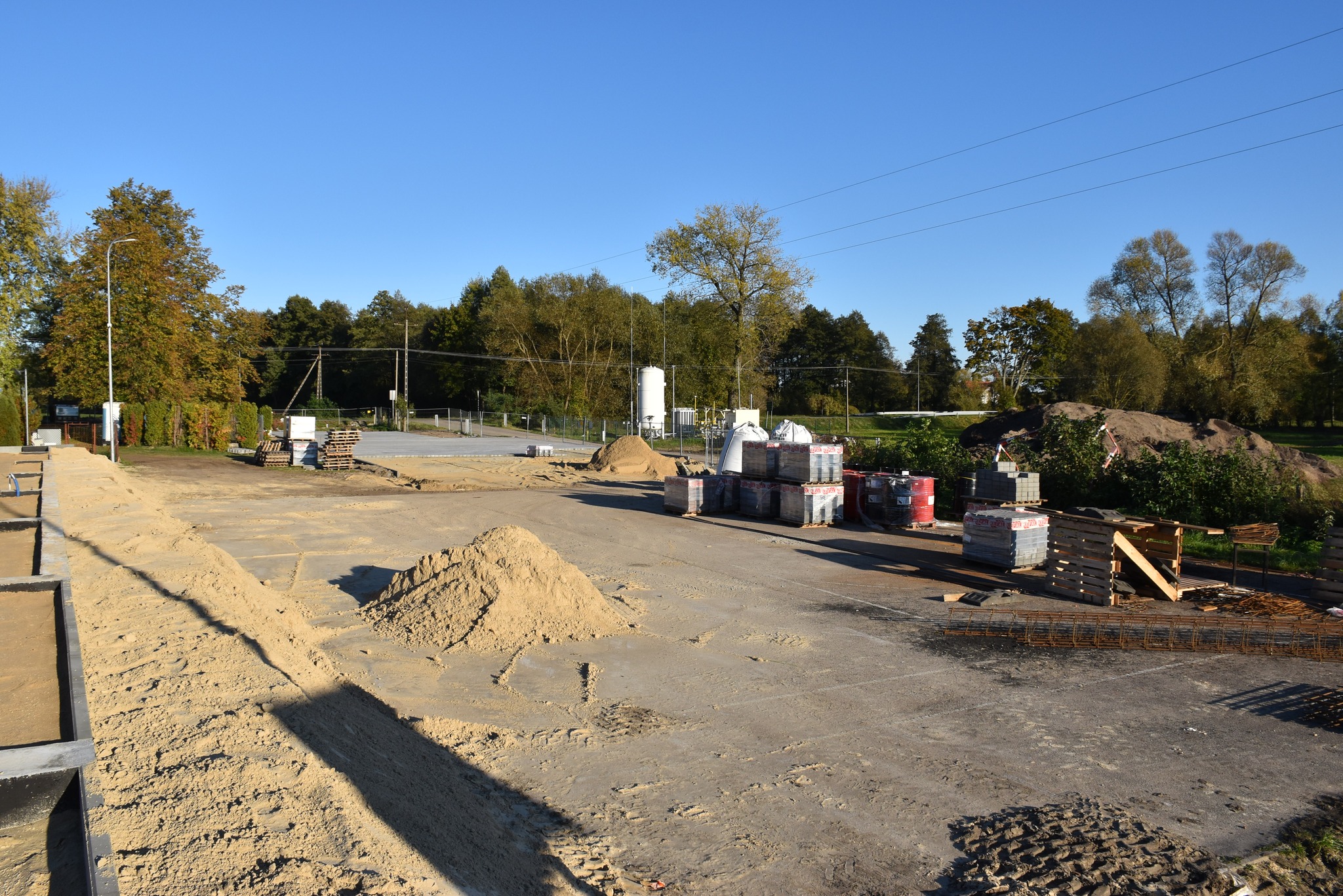 Fundamenty są już niemal gotowe, a prace nad parkingiem i drogą dojazdową postępują zgodnie z planem. Wkrótce rozpocznie się montaż drewnianego zadaszenia.