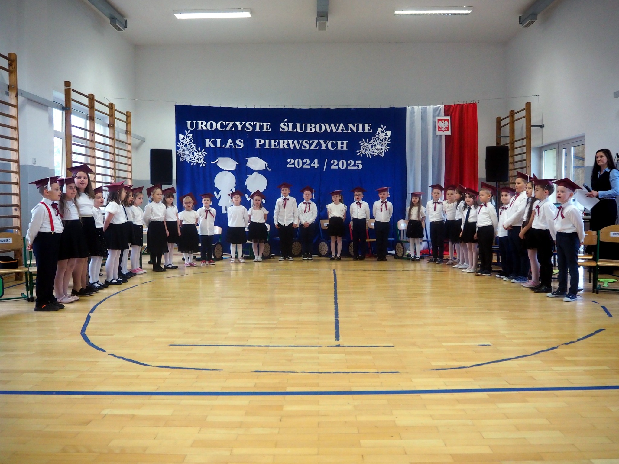 W wydarzeniu udział wzięli: dyrektor Wojciech Strzeszewski, wójt gminy Andrzejewo Beata Ponichtera, sekretarz gminy Ewa Staniaszko, przewodniczący Rady Gminy Krzysztof Jasko, członkini zarządu firmy Skłodowski Elżbieta Skłodowska, przewodnicząca rady rodziców Iwona Tymińska, wychowawcy obecnych klas, rodzice pierwszoklasistów oraz grupa 6-latków.