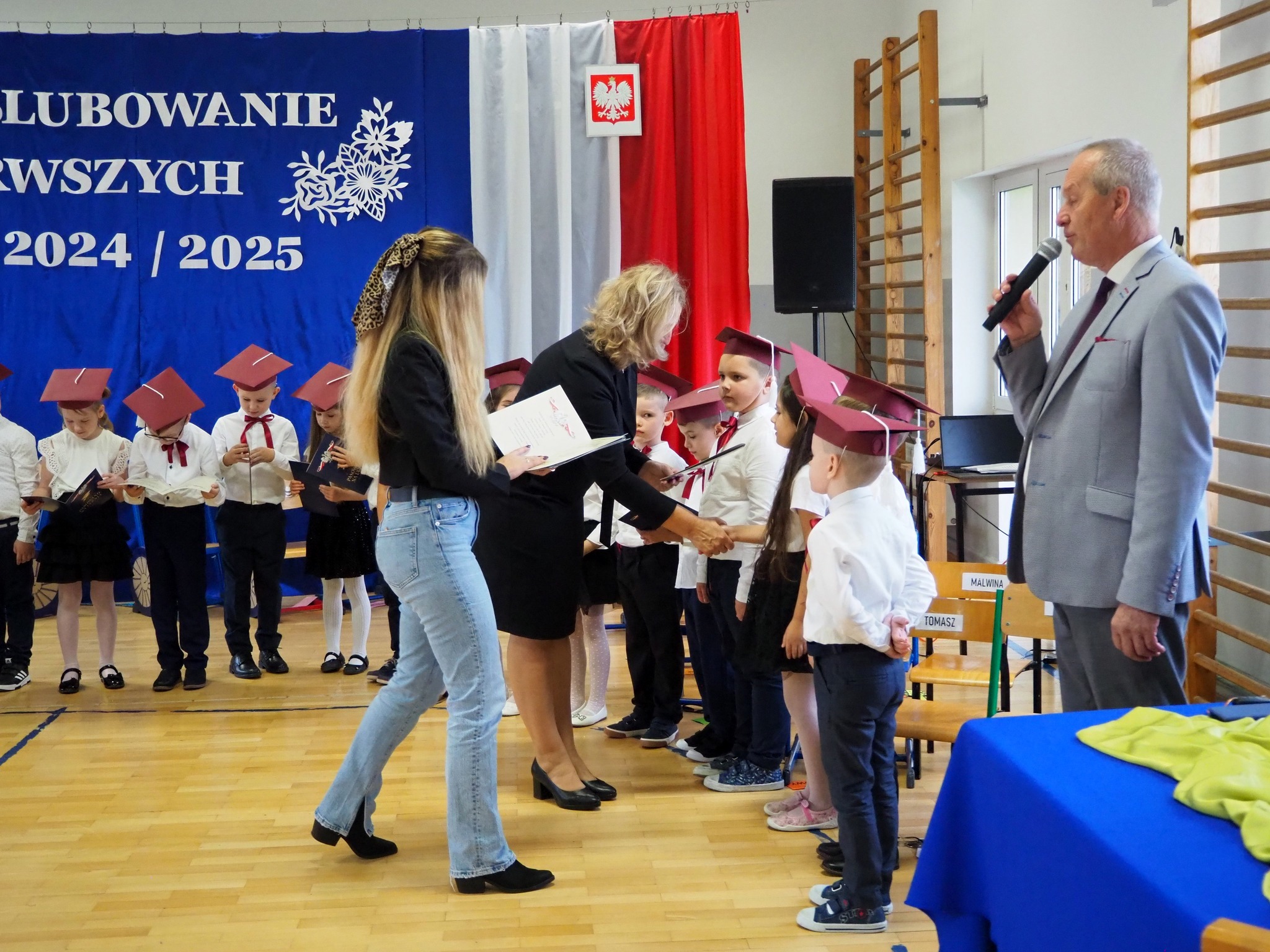W wydarzeniu udział wzięli: dyrektor Wojciech Strzeszewski, wójt gminy Andrzejewo Beata Ponichtera, sekretarz gminy Ewa Staniaszko, przewodniczący Rady Gminy Krzysztof Jasko, członkini zarządu firmy Skłodowski Elżbieta Skłodowska, przewodnicząca rady rodziców Iwona Tymińska, wychowawcy obecnych klas, rodzice pierwszoklasistów oraz grupa 6-latków.