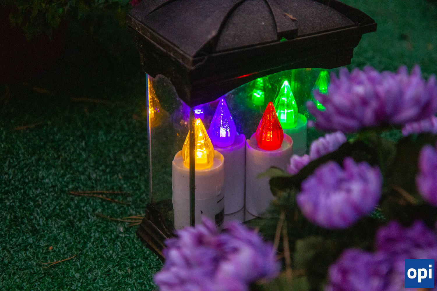 Cmentarz komunalny przy ul. Wiśniowej. Galeria przedstawia znicze, pamiątki i kwiaty, którymi upamiętniono zmarłych.