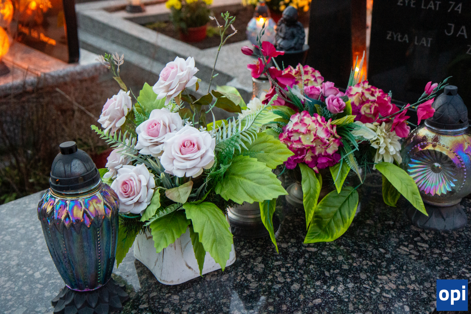 Parafialny cmentarz w Małkini Górnej po zmierzchu rozświetlił się łuną światła zniczy.