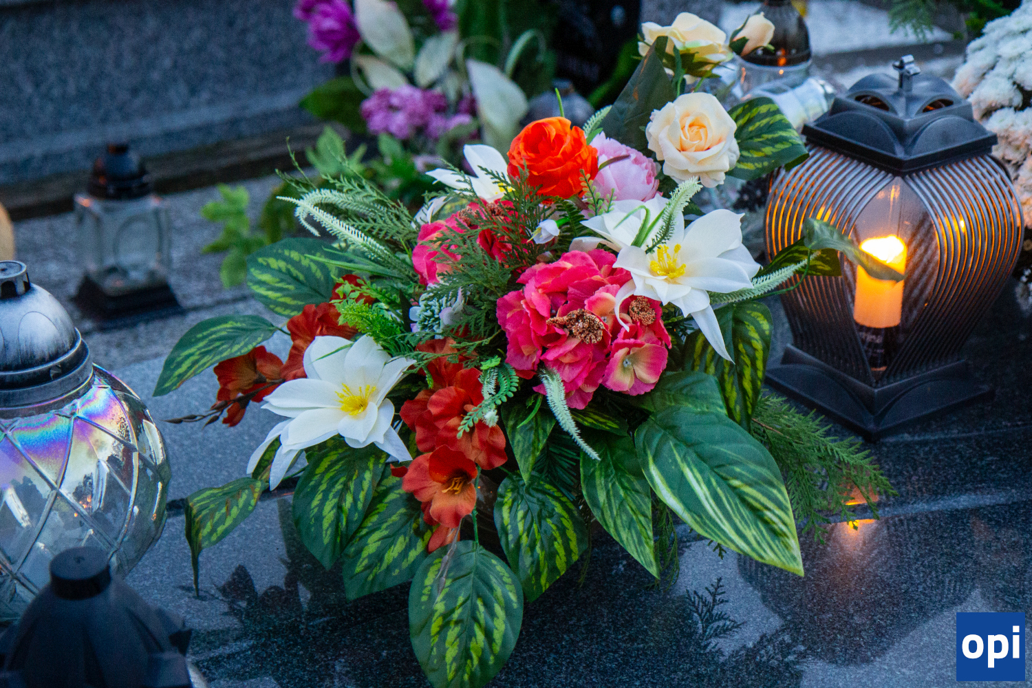 Parafialny cmentarz w Małkini Górnej po zmierzchu rozświetlił się łuną światła zniczy.