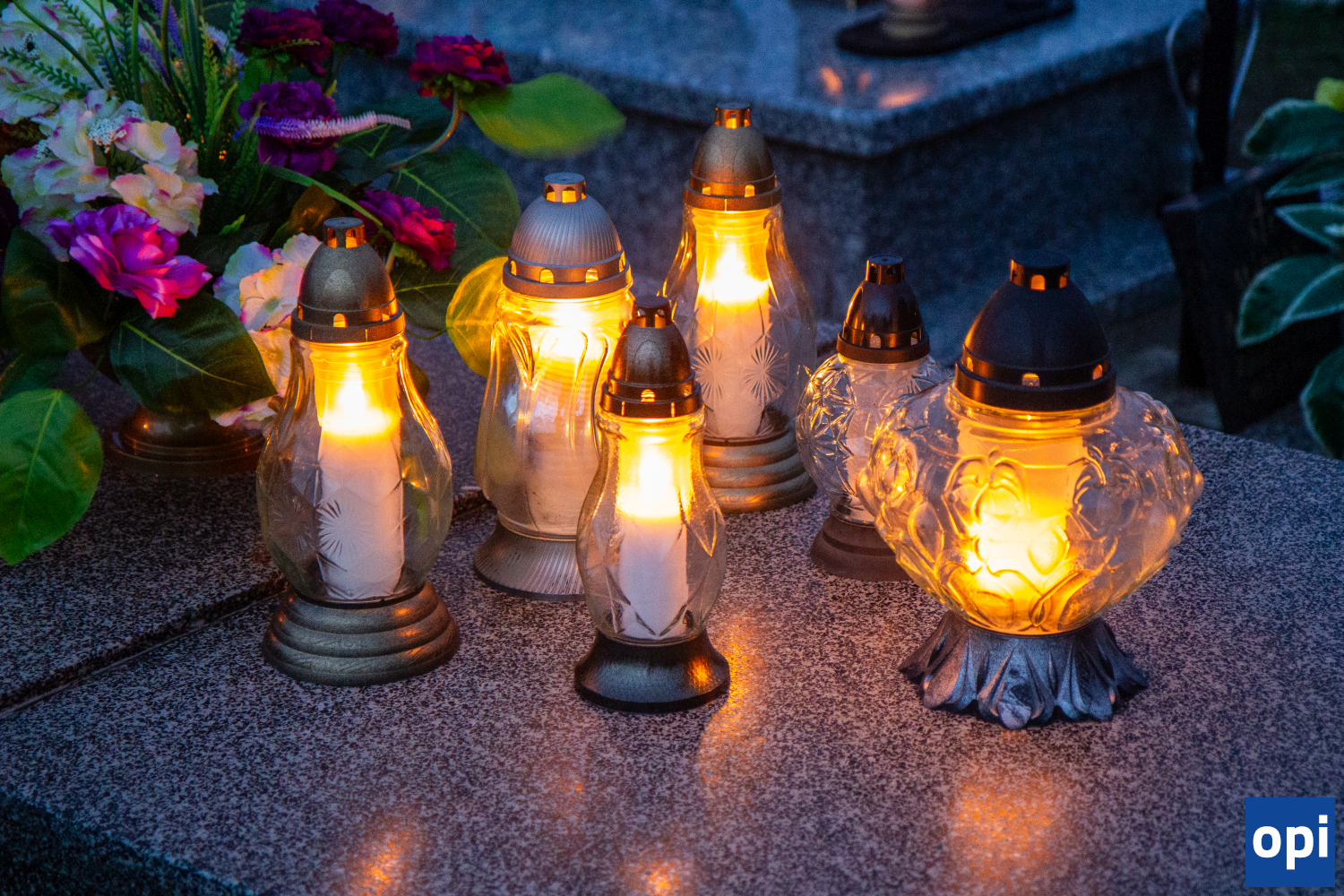 Parafialny cmentarz w Małkini Górnej po zmierzchu rozświetlił się łuną światła zniczy.