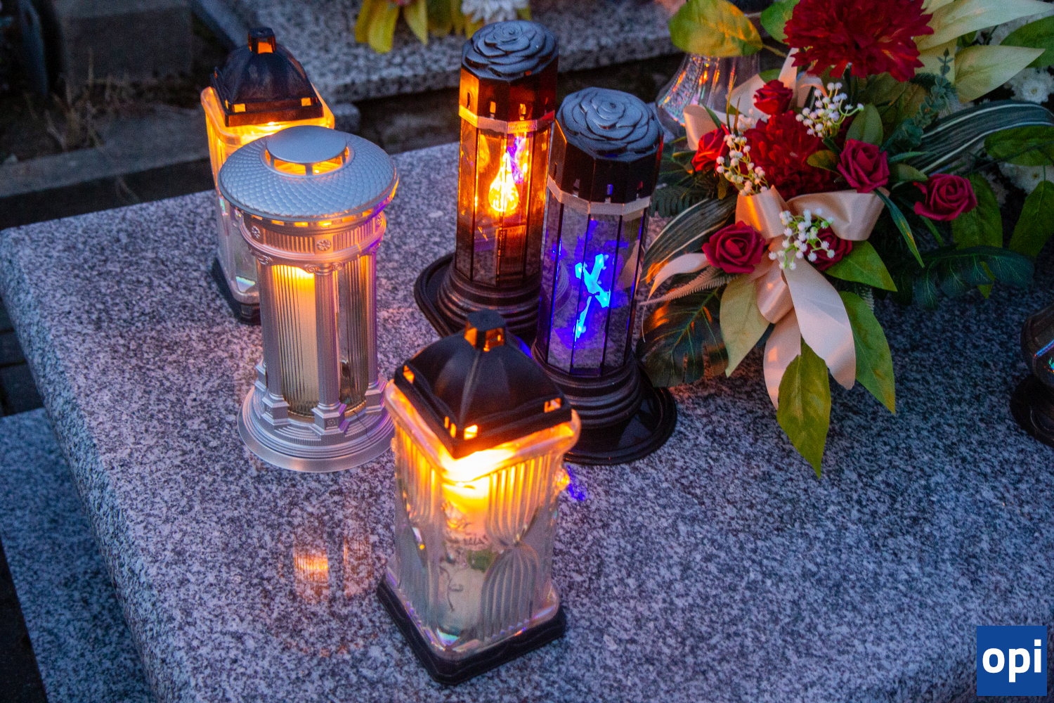 Parafialny cmentarz w Małkini Górnej po zmierzchu rozświetlił się łuną światła zniczy.