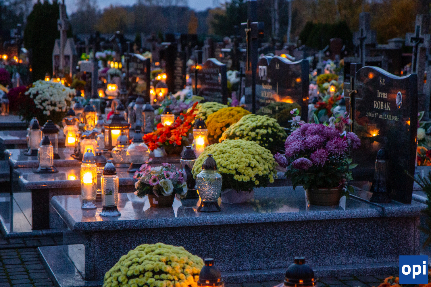 Parafialny cmentarz w Małkini Górnej po zmierzchu rozświetlił się łuną światła zniczy.