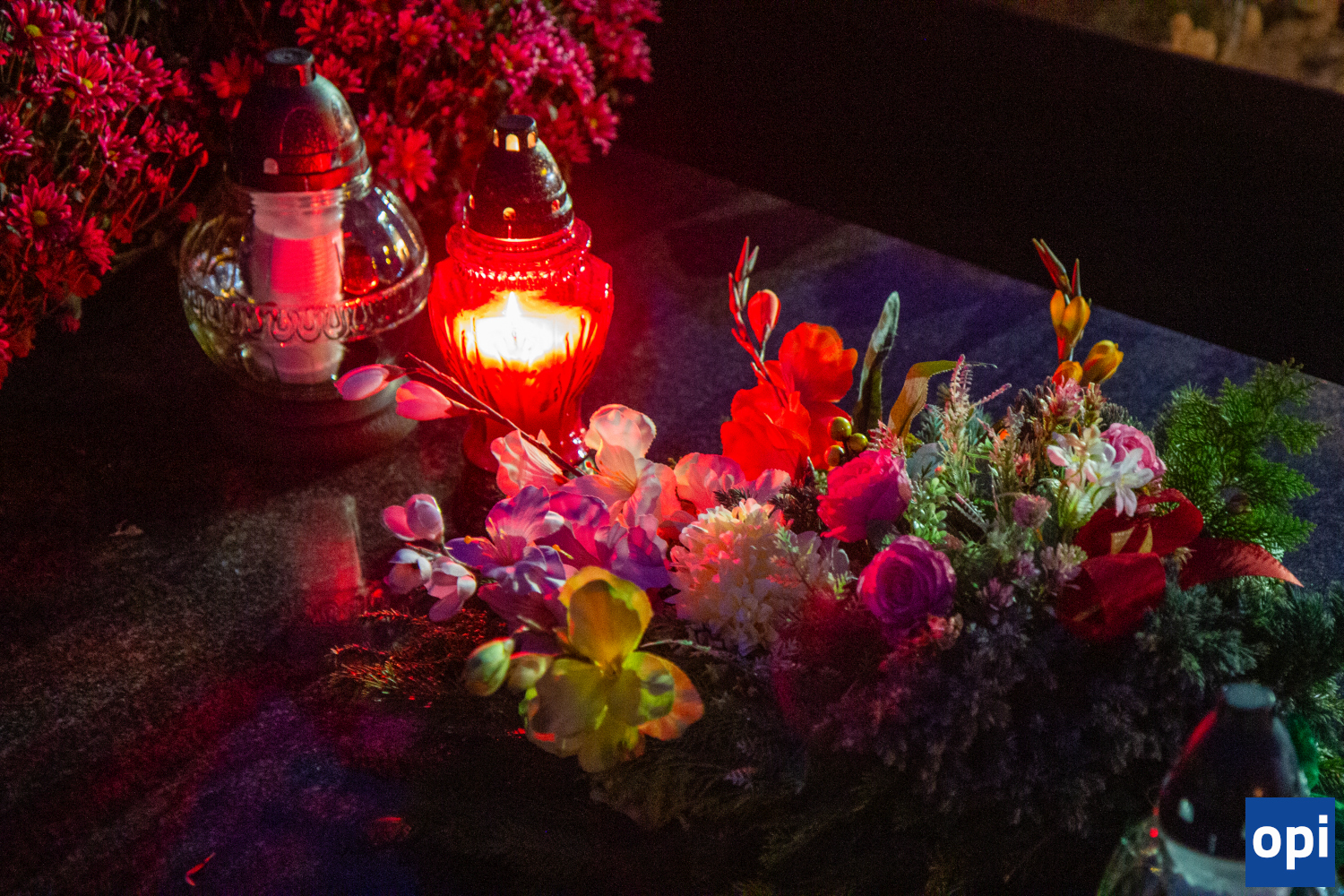 Parafialny cmentarz w Małkini Górnej po zmierzchu rozświetlił się łuną światła zniczy.