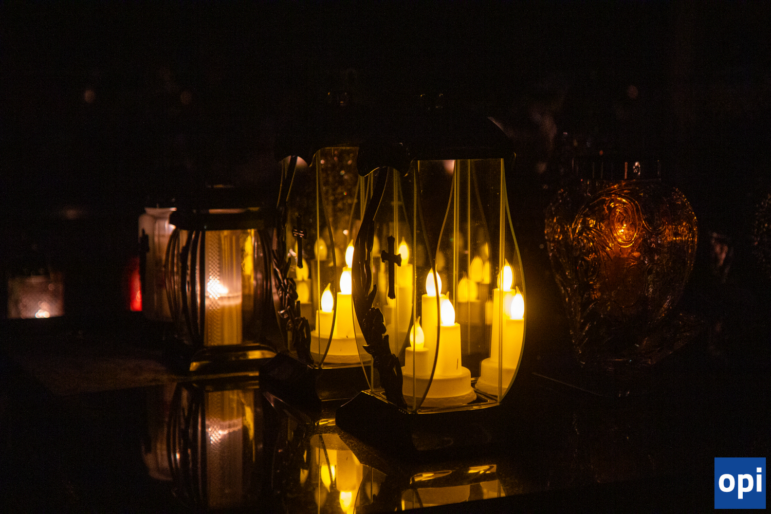 Parafialny cmentarz w Małkini Górnej po zmierzchu rozświetlił się łuną światła zniczy.