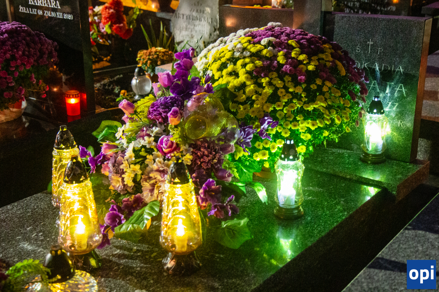 Parafialny cmentarz w Małkini Górnej po zmierzchu rozświetlił się łuną światła zniczy.