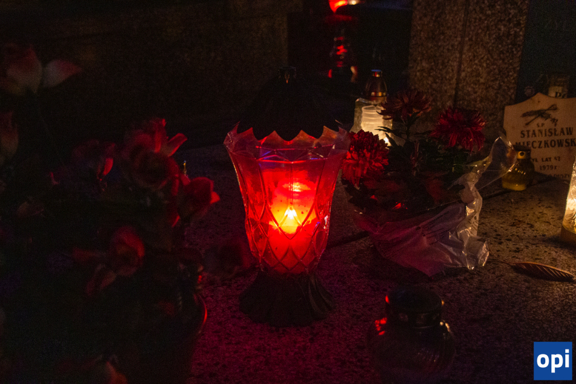 Blask zniczy na cmentarzu parafialnym w Ostrowi Mazowieckiej.