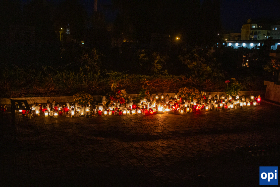 Blask zniczy na cmentarzu parafialnym w Ostrowi Mazowieckiej.