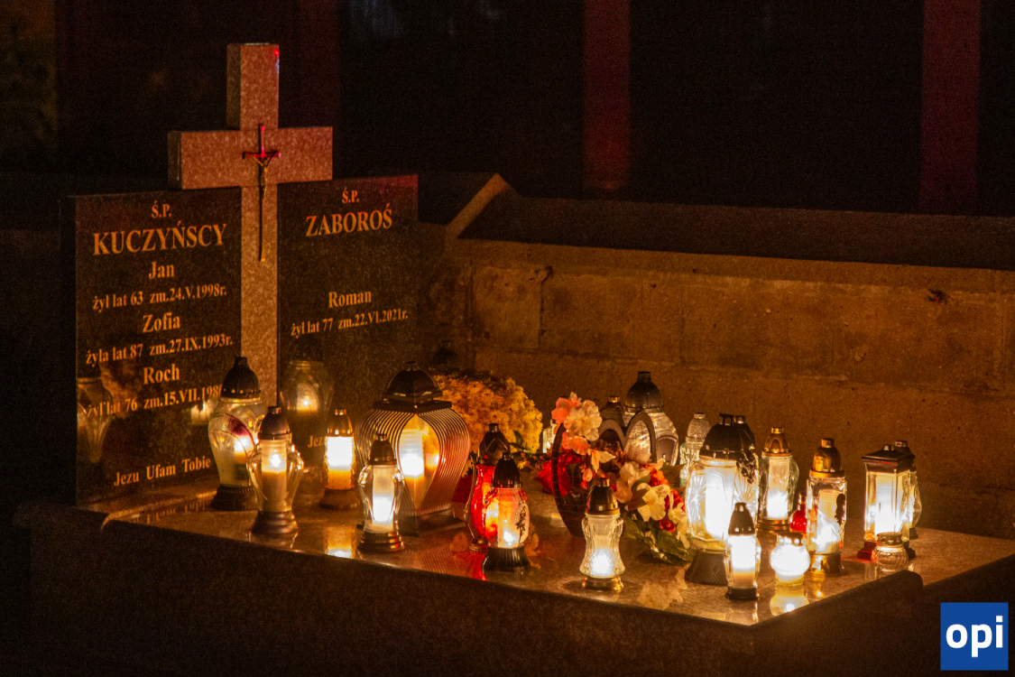Blask zniczy na cmentarzu parafialnym w Ostrowi Mazowieckiej.