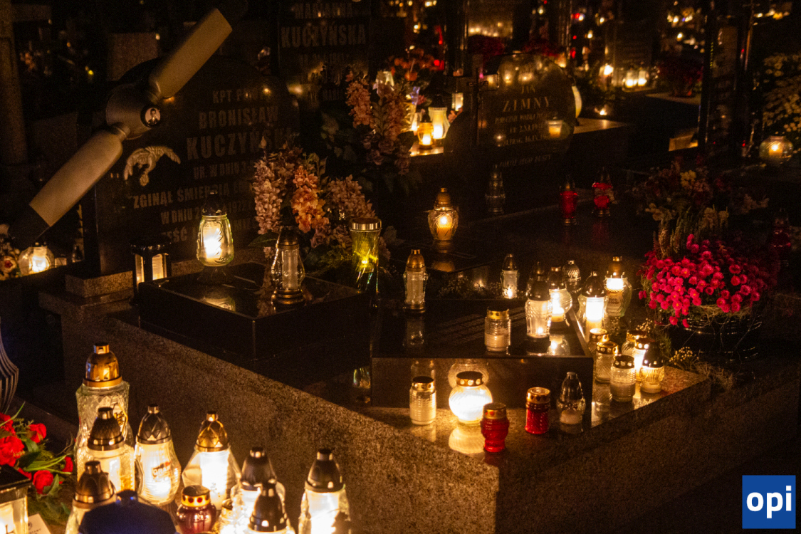 Blask zniczy na cmentarzu parafialnym w Ostrowi Mazowieckiej.