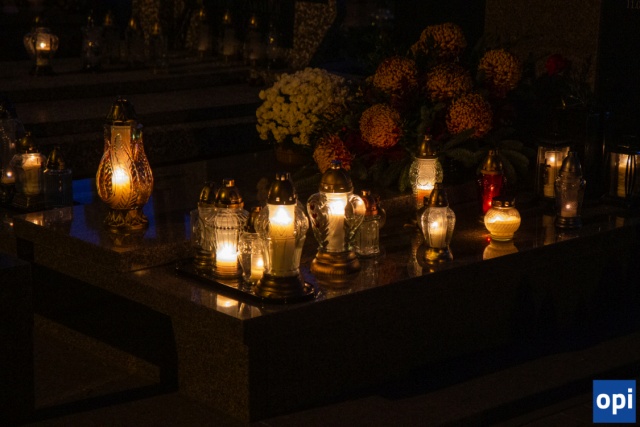 Blask zniczy na cmentarzu parafialnym w Ostrowi Mazowieckiej.