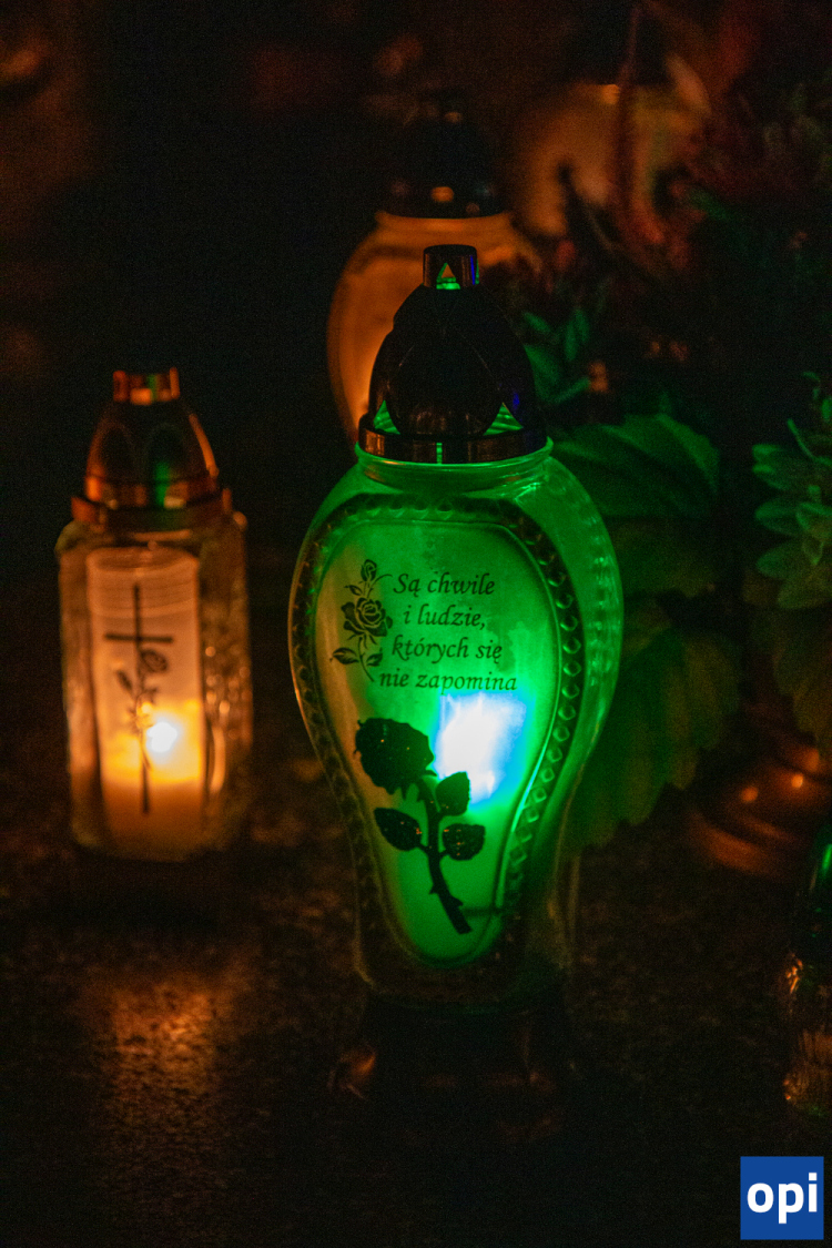 Blask zniczy na cmentarzu parafialnym w Ostrowi Mazowieckiej.