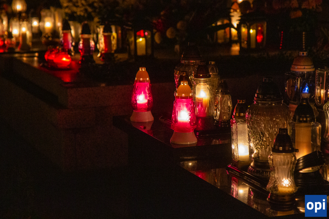 Blask zniczy na cmentarzu parafialnym w Ostrowi Mazowieckiej.