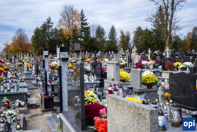 Cmentarz w Andrzejewie zapełnił się rodzinami W Dzień Zaduszny, które przybyły, by oddać hołd zmarłym.
