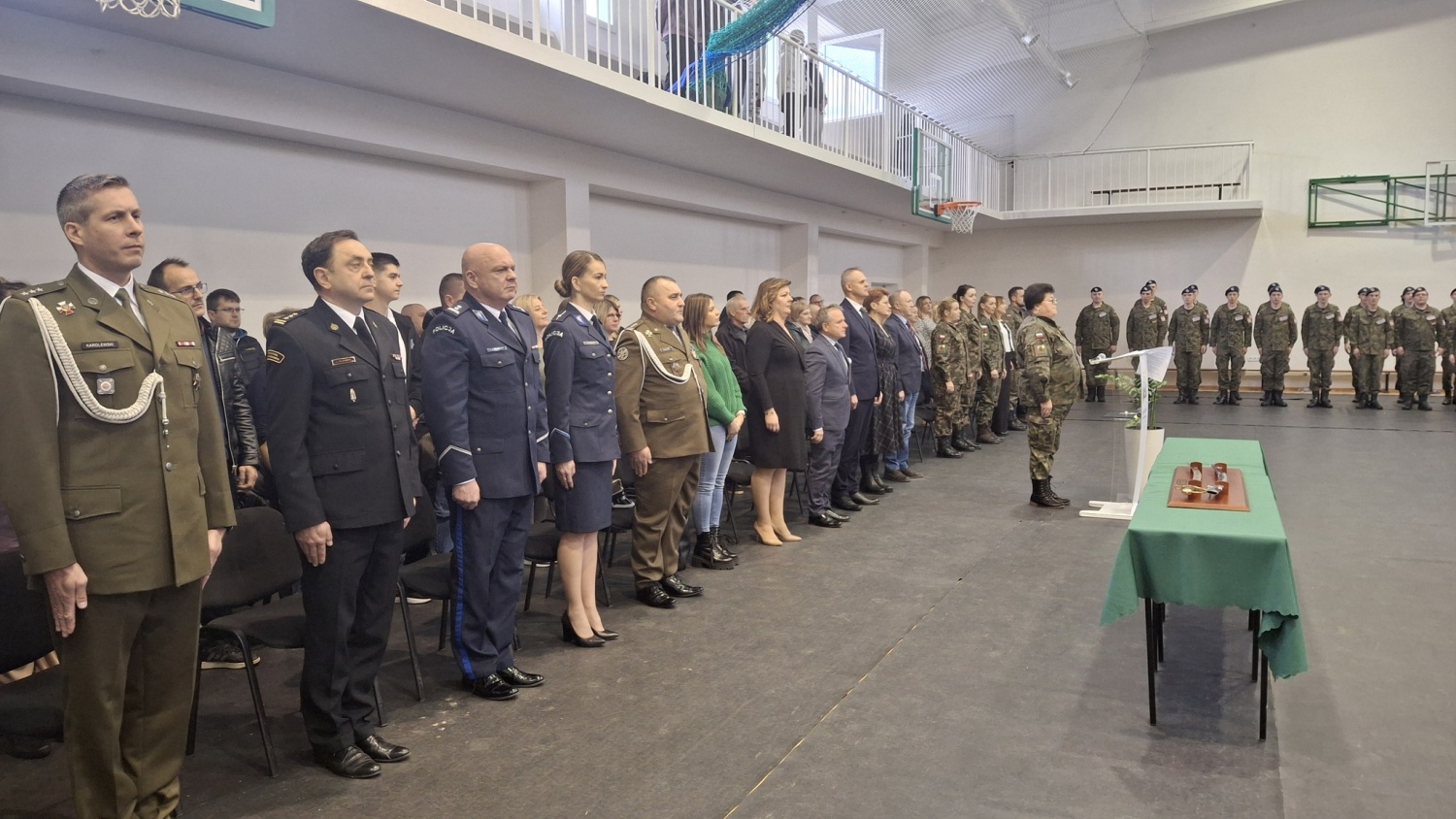 Uczniowie klasy mundurowej otrzymali nominacje na stopnie kadeckie, a nowy poczet sztandarowy został uroczyście zaprezentowany.