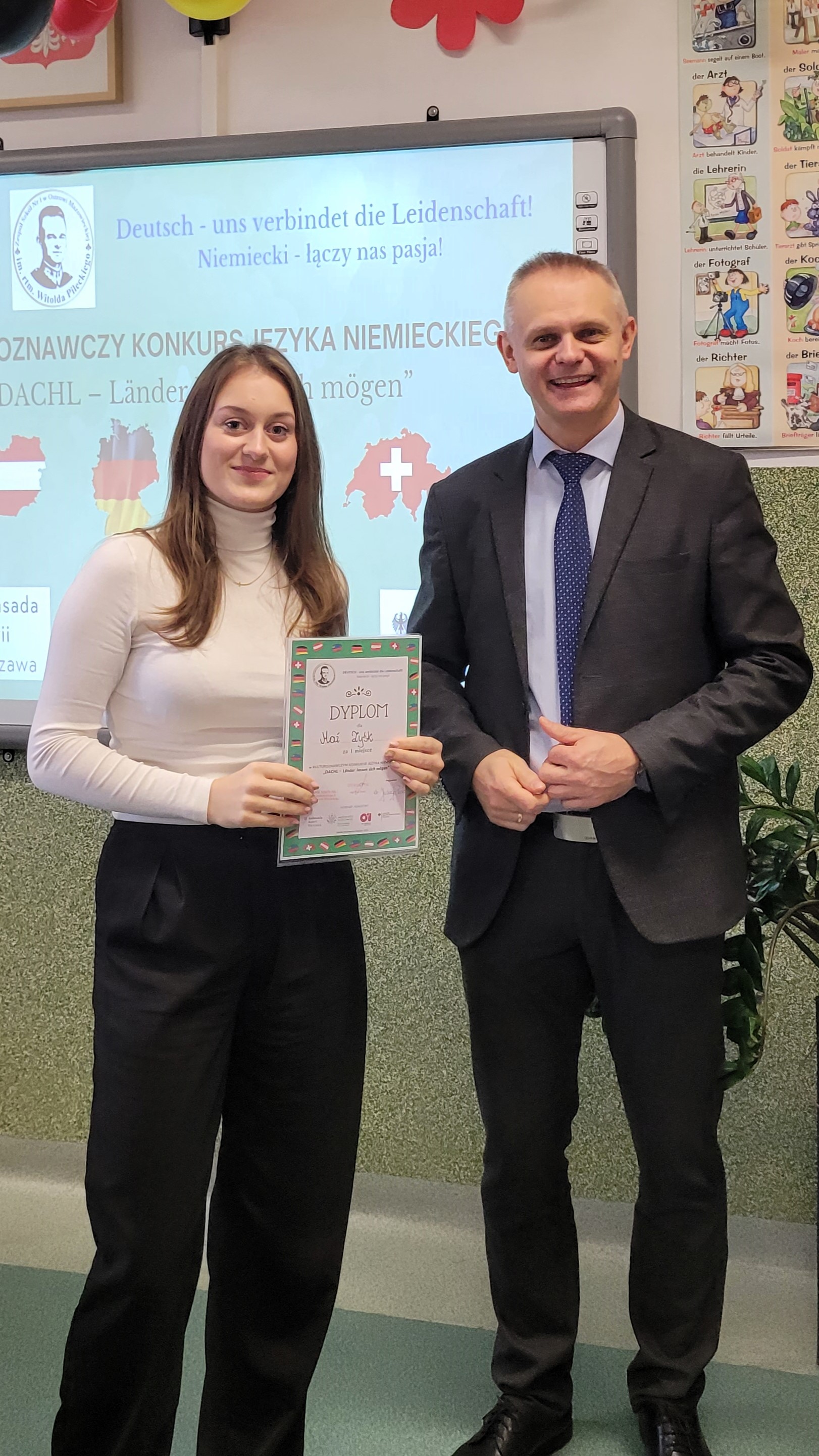 Uczniowie Zespołu Szkół nr 1 im. rtm. Witolda Pileckiego wzięli udział w Kulturoznawczym Konkursie Języka Niemieckiego pt. "DACHL - Länder lassen sich mögen". Uczestnicy konkursu mieli okazję wykazać się wiedzą o krajach niemieckojęzycznych.