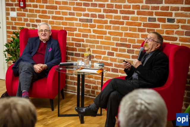 Spotkanie z cyklu "Ścieżki historii i tradycji", dotyczące parafii pw. WNMP w Ostrowi Mazowieckiej. Prowadzącymi byli ks. dr Jan Okuła i Andrzej Mierzwiński.
