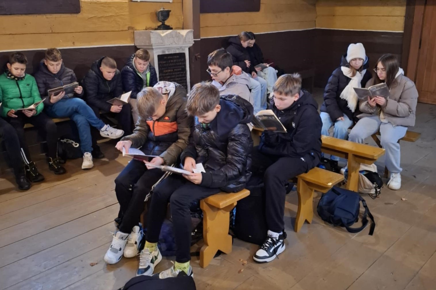 Na cmentarzu parafialnym, w otoczeniu nagrobków uczniowie czytali fragmenty części drugiej "Dziadów", dramatu Adama Mickiewicza.
