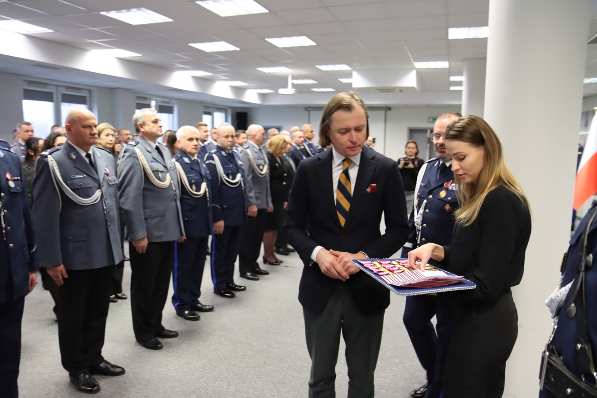 Wśród odznaczonych byli: komendant KP w Małkini Górnej asp. szt. Tomasz Zęgota oraz kom. w stanie spoczynku Justyna Biedrzycka kierującą jednostką od maja 2018 - do lutego 2024.