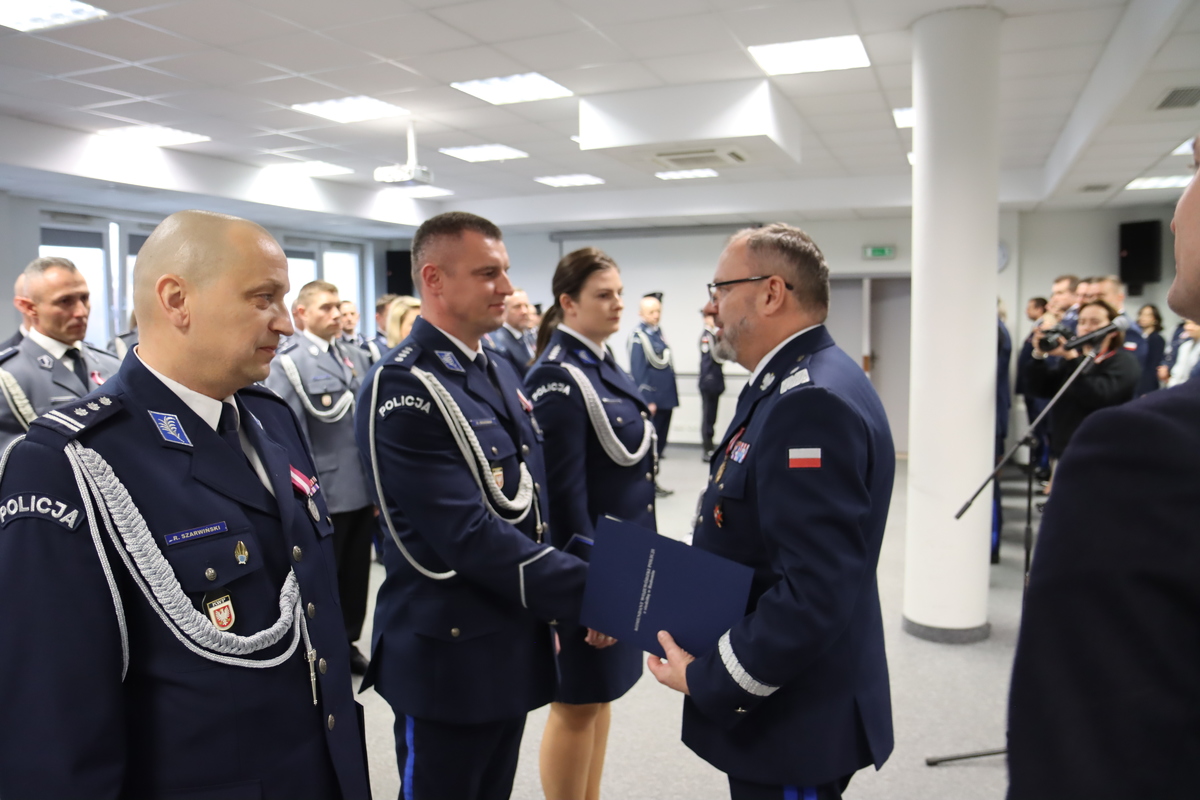 Wśród odznaczonych byli: komendant KP w Małkini Górnej asp. szt. Tomasz Zęgota oraz kom. w stanie spoczynku Justyna Biedrzycka kierującą jednostką od maja 2018 - do lutego 2024.