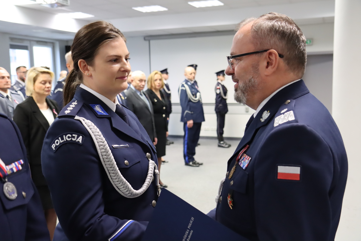 Wśród odznaczonych byli: komendant KP w Małkini Górnej asp. szt. Tomasz Zęgota oraz kom. w stanie spoczynku Justyna Biedrzycka kierującą jednostką od maja 2018 - do lutego 2024.