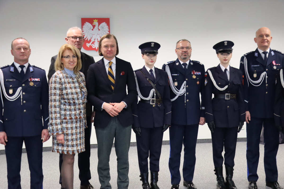 Wśród odznaczonych byli: komendant KP w Małkini Górnej asp. szt. Tomasz Zęgota oraz kom. w stanie spoczynku Justyna Biedrzycka kierującą jednostką od maja 2018 - do lutego 2024.